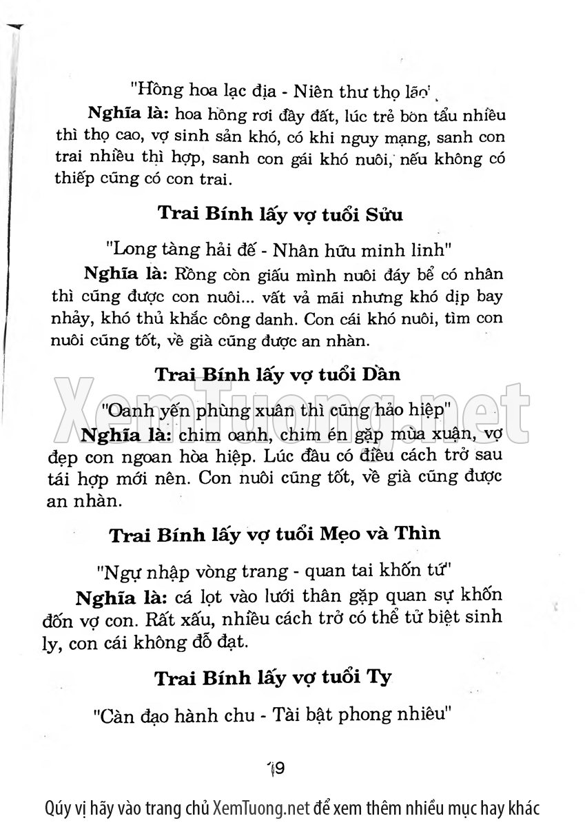 Sách số Coi tuổi làm nhà và Dựng vợ gả chồng giải thích một cách kỹ lưỡng về tuổi kết hôn đẹp và những người hợp tuổi nhau, minh chứng cho điều đó là cuốn sách hướng dẫn xem tuổi cưới vợ do tác giả Huỳnh Liên đã viết rất cặn kẽ về ngũ hành tương sinh, ngũ hành tương khắc và tuổi tứ hành xung.