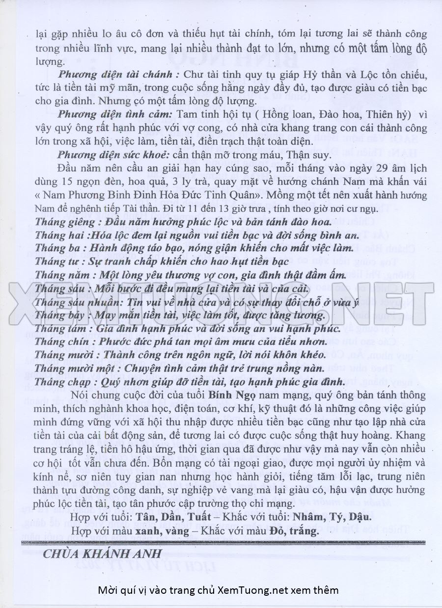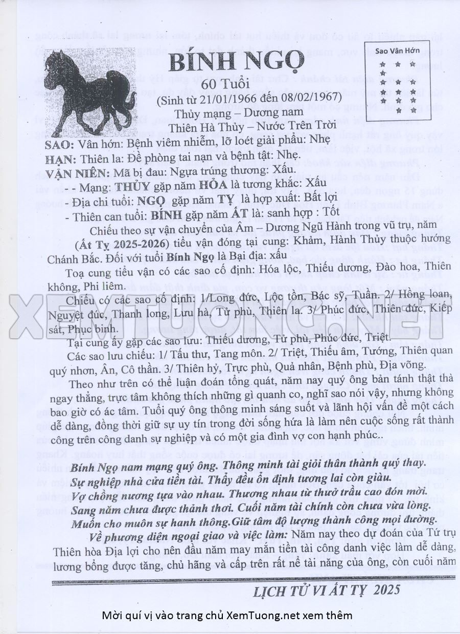 Tử Vi Năm Ất Tỵ 2025 mạng nam BÍNH NGỌ