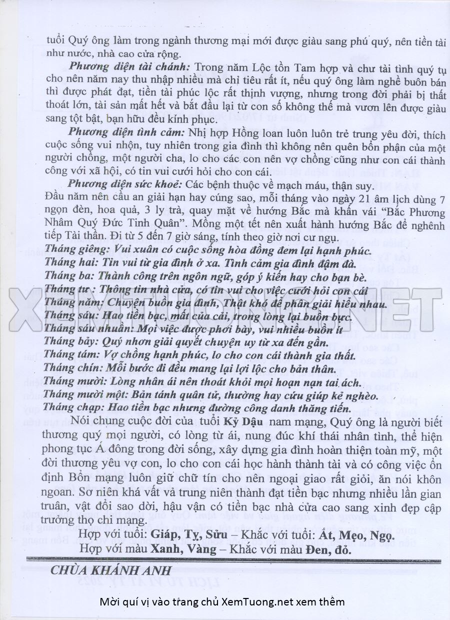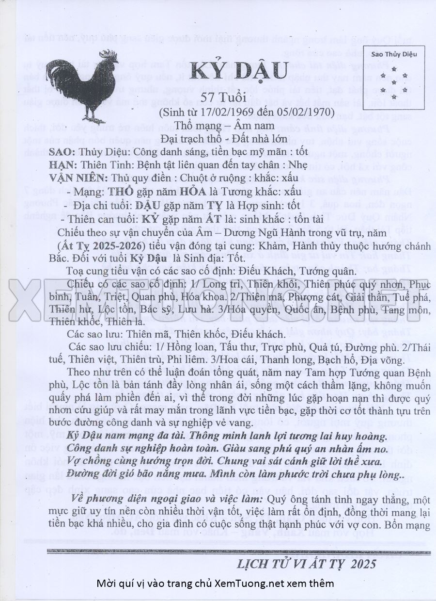 Tử Vi Năm Ất Tỵ 2025 mạng nam KỶ DẬU