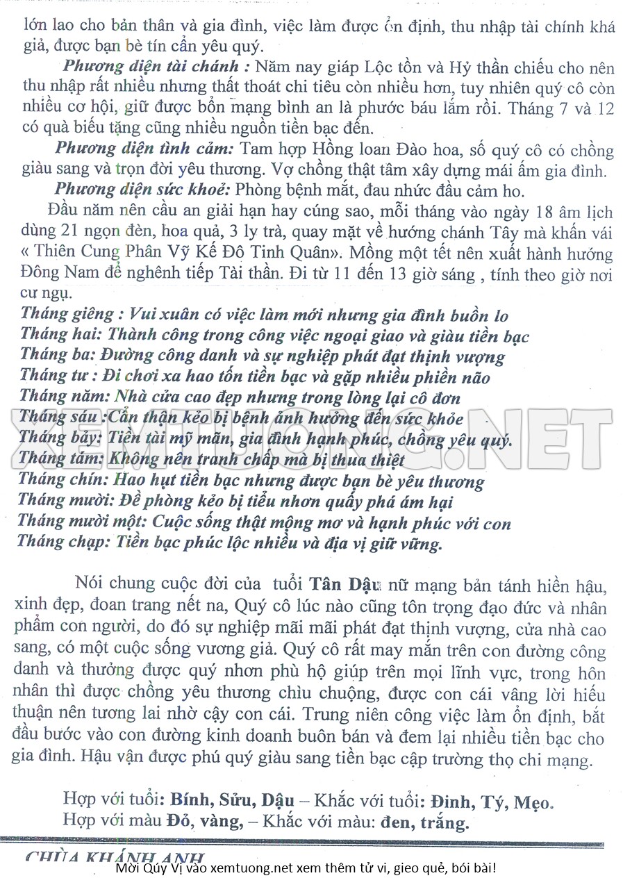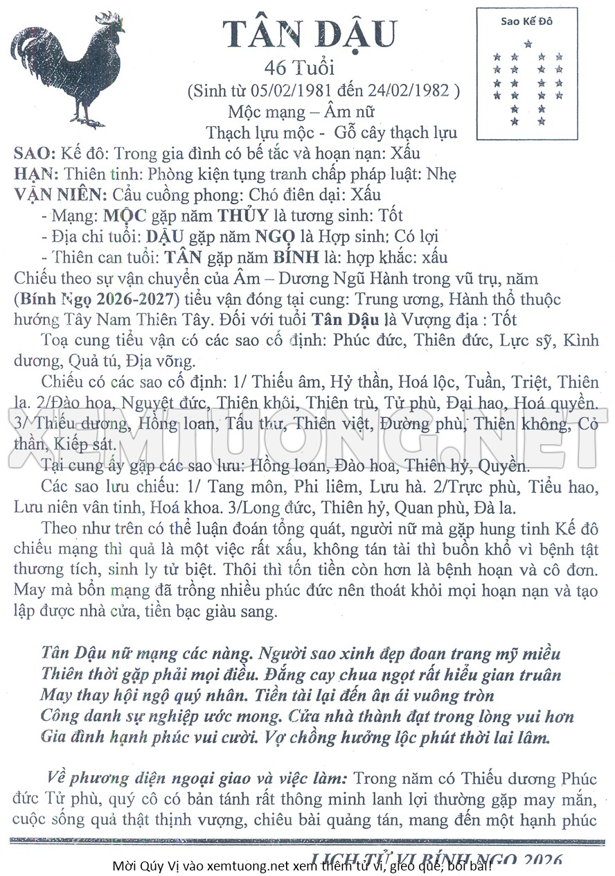 Tử Vi Năm Bính Ngọ 2026 mạng nữ TÂN DẬU